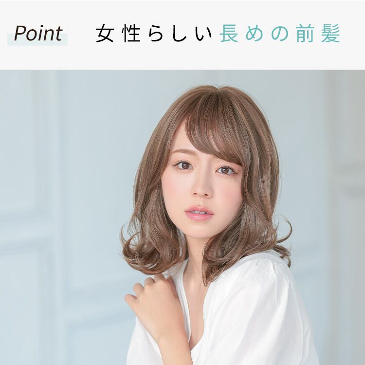 長めの前髪を横に流すことによって大人女性らしい程よい抜け感に。顔周りのカールがより上品な雰囲気を印象付けます。