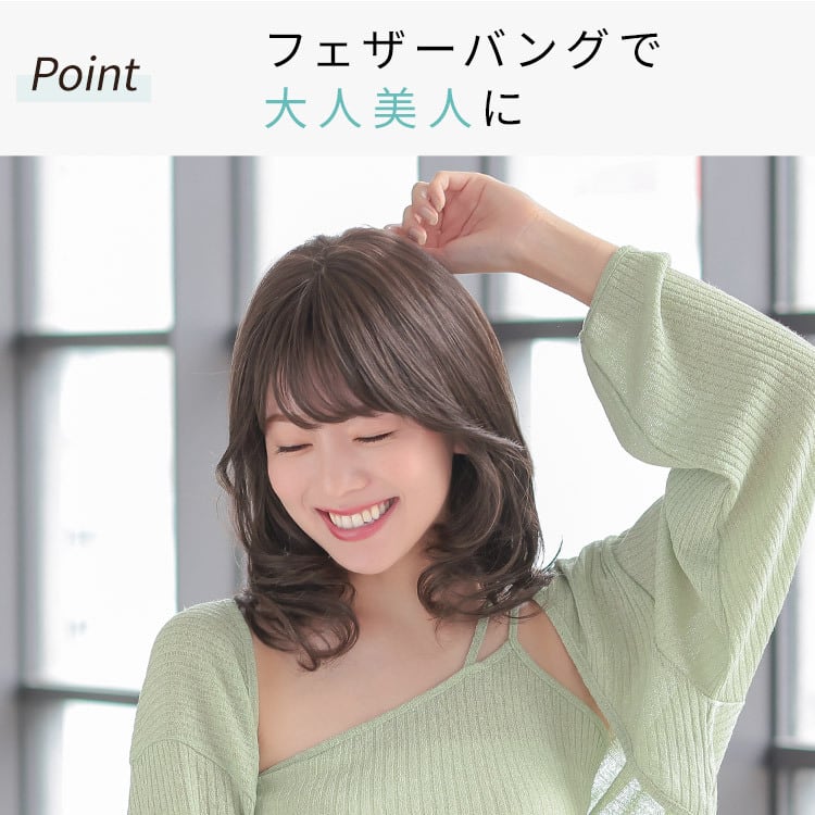 顔周りの計算されたフェザーバングで、トレンド感も忘れません。